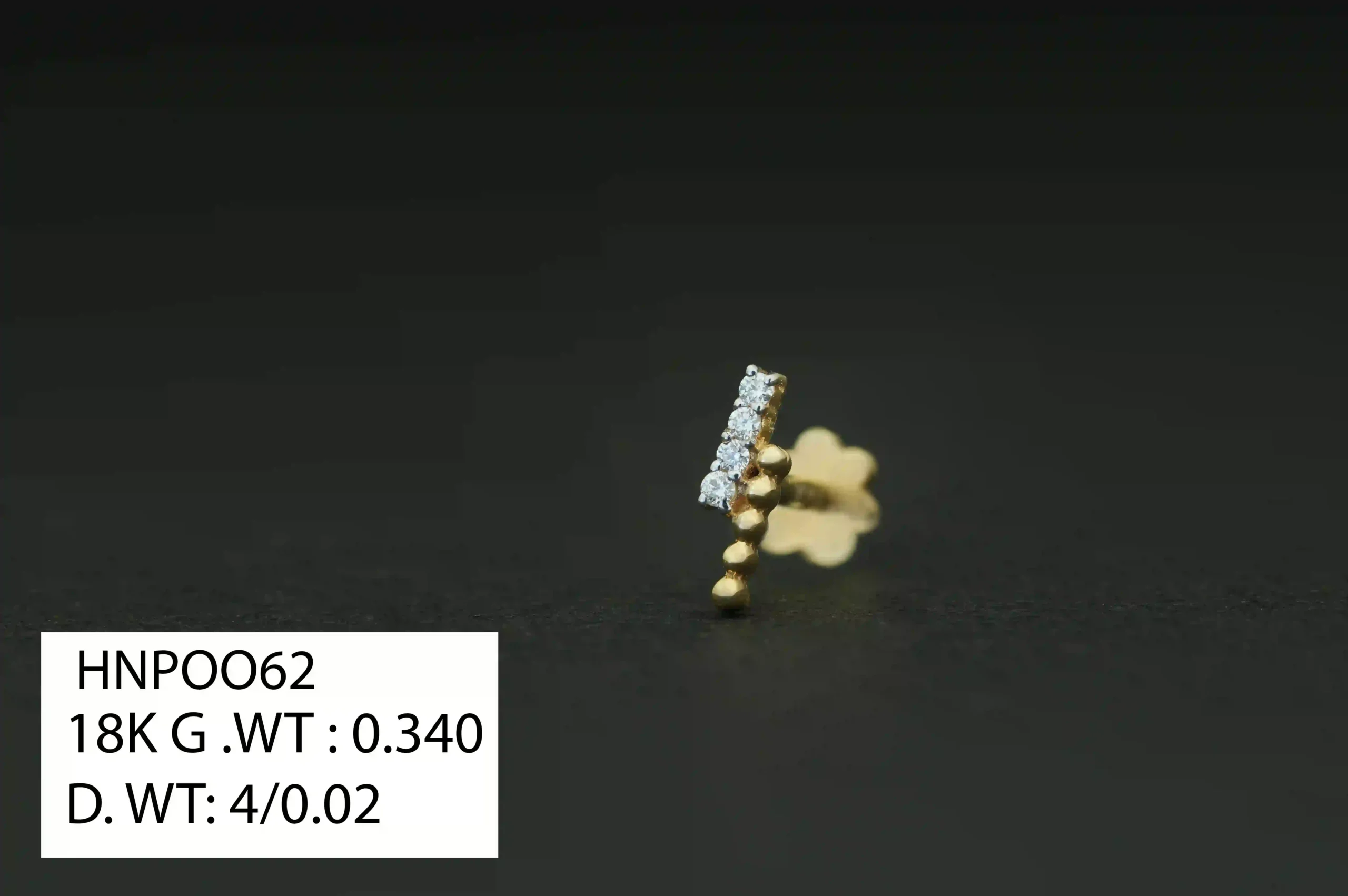 This elegant nose pin features a sleek vertical design accented with fine sparkling details for a modern look. Crafted to sit comfortably on the nose, it offers a secure fit suitable for daily wear. The minimalist style adds a touch of sophistication without being overpowering. Perfect for both casual outfits and special occasions, it blends effortlessly with any look. A timeless nose pin designed for those who appreciate subtle beauty and refined craftsmanship.