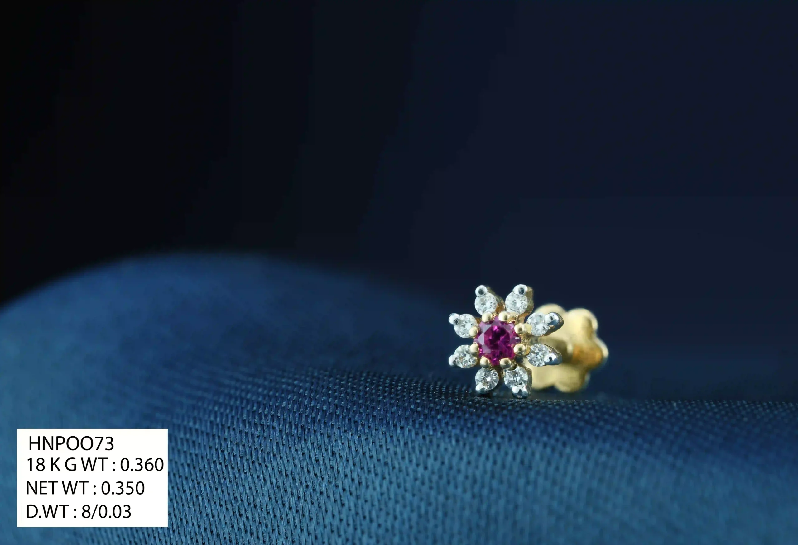 This elegant nose pin features a charming floral design highlighted with a vibrant center stone for a graceful pop of color. The delicate detailing adds a refined sparkle while maintaining a balanced and feminine look. Designed for a comfortable and secure fit, it sits neatly on the nose for everyday wear. Its versatile style makes it perfect for both casual outfits and special occasions. A timeless nose pin that blends elegance, color, and fine craftsmanship beautifully.
