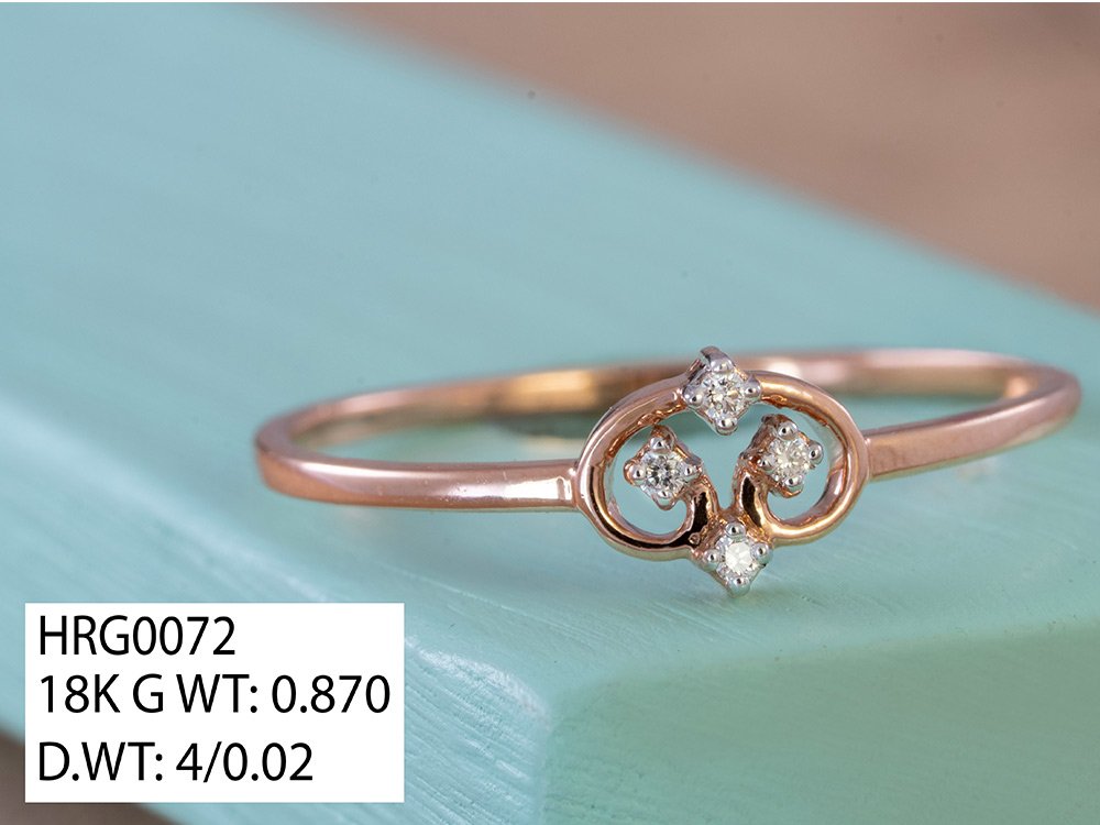 This delicate 18K gold ring (HRG0072) features an elegant swirl-inspired design accented with sparkling diamonds. Crafted with 0.870 g of gold, it offers a lightweight and comfortable fit. The ring is set with 4 brilliant diamonds totaling 0.02 ct, adding a subtle touch of shine. Its minimal and graceful style makes it perfect for daily wear or gifting. A charming piece that adds effortless elegance to any jewellery collection.
